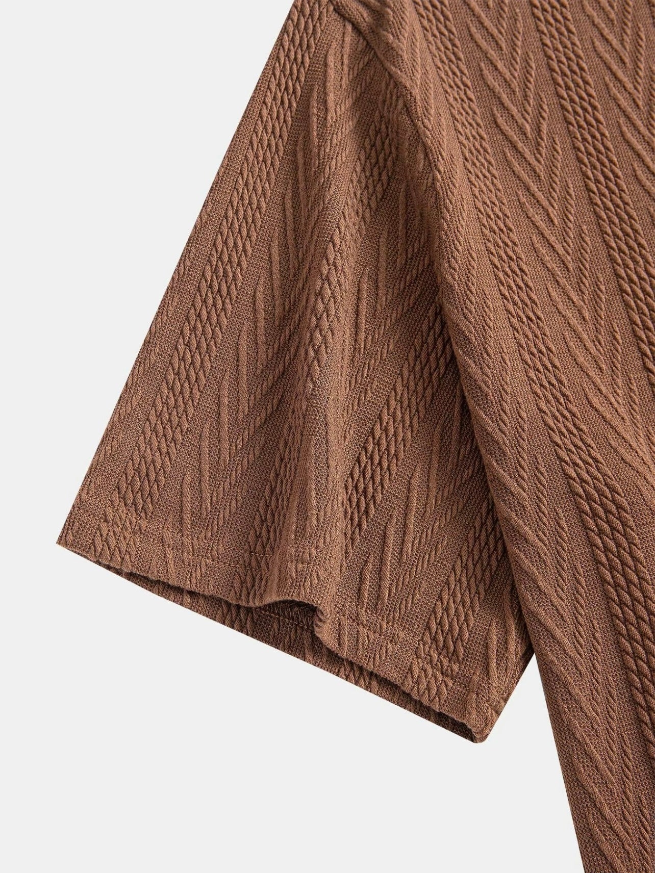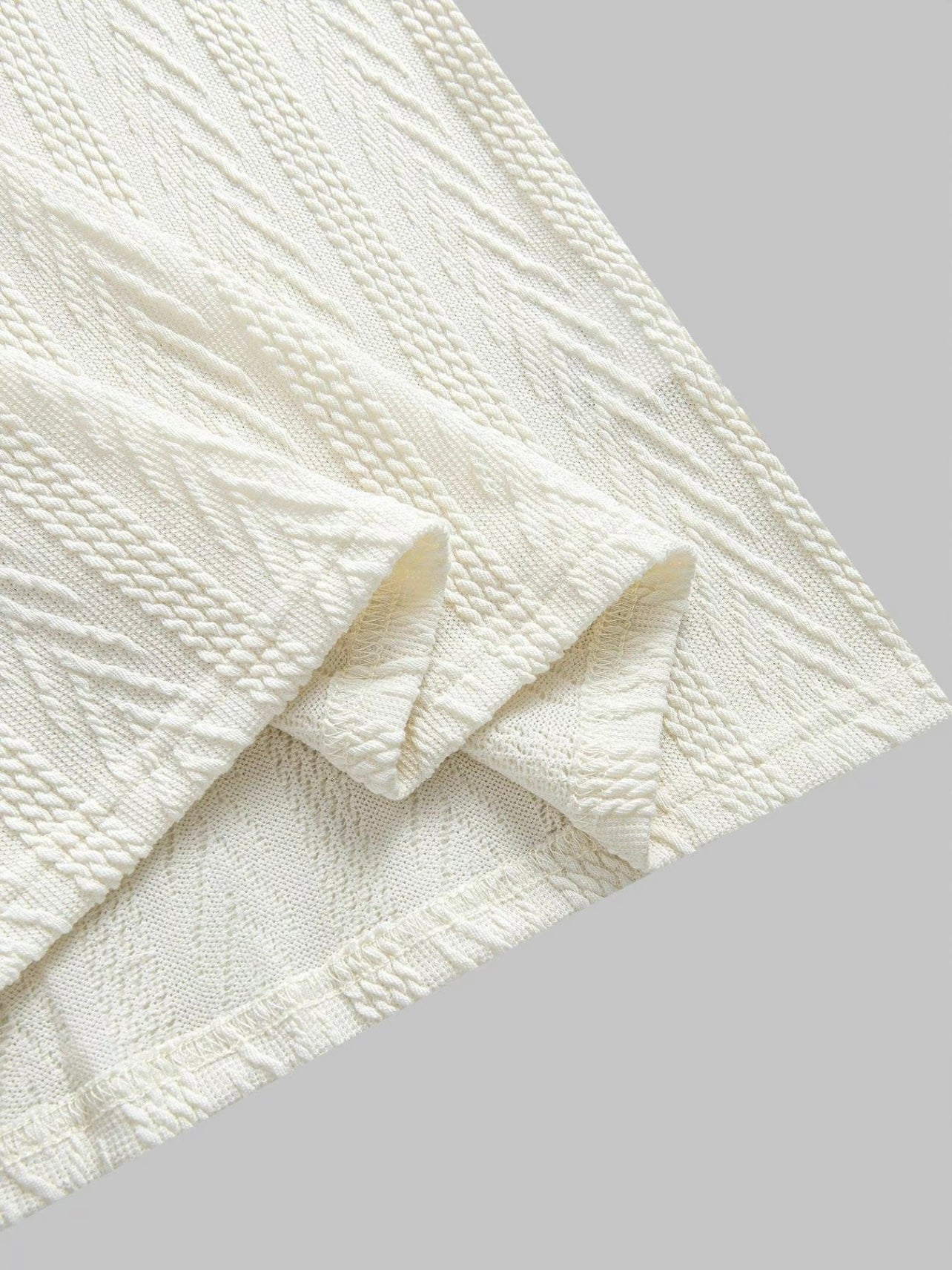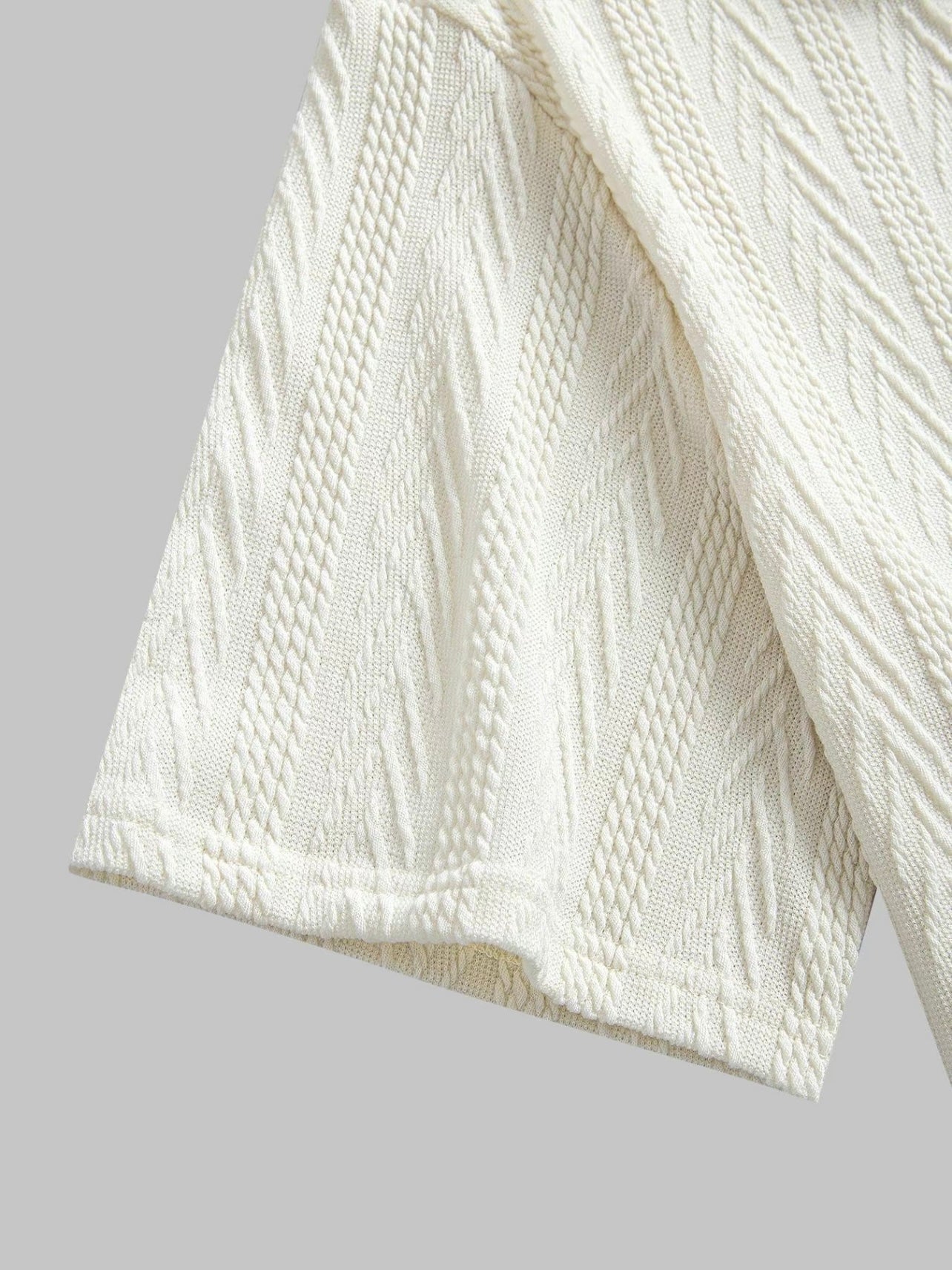 Turn heads with this ivory polo that blends effortless style with a touch of vintage flair. The bold chevron knit pattern isn’t just eye-catching—it’s a conversation starter, while the soft, breathable fabric keeps you cool when things heat up.